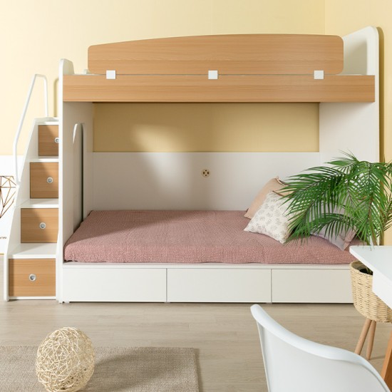 [구성:침대프레임+하부수납침대+수납계단+목재가드(오크/화이트)] 성인도 아이도 사용 가능한 수납형침대