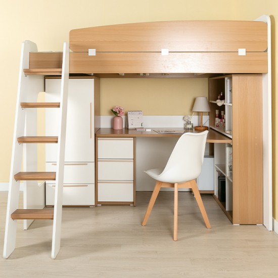 [구성:침대프레임+H형책상+옷장B+사다리+목재가드(오크/화이트)] 성인도 아이도 사용 가능한 수납형침대