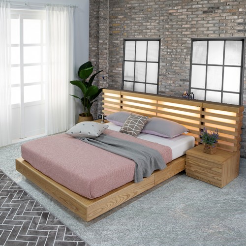 모던 감각을 살린 애쉬 무늬목 침대