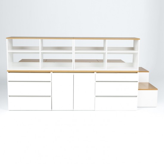 [구성 : 기본형선택(A,B,C,D)+확장형수납장2+계단세트+책상책장2] 수납이 가능한 모듈형 침대! 원하는 구성으로 조합하는 데니스