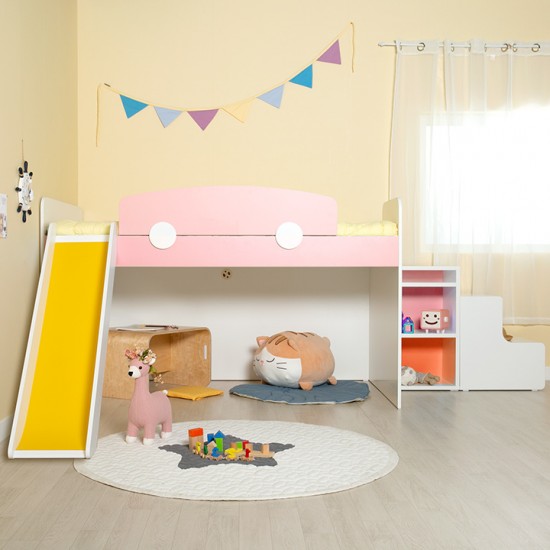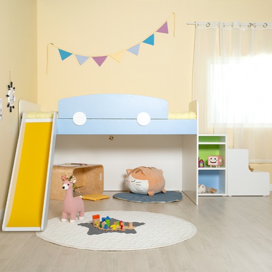 [구성:침대프레임+1200가드+미끄럼틀+서랍계단세트] E0 안심 자제로 사용한 우리아이 신나는 놀이터