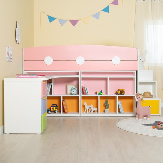 [구성:침대프레임+2000가드+서랍계단세트+980미니책장+H형책상세트] E0 안심 자제로 사용한 우리아이 신나는 놀이터