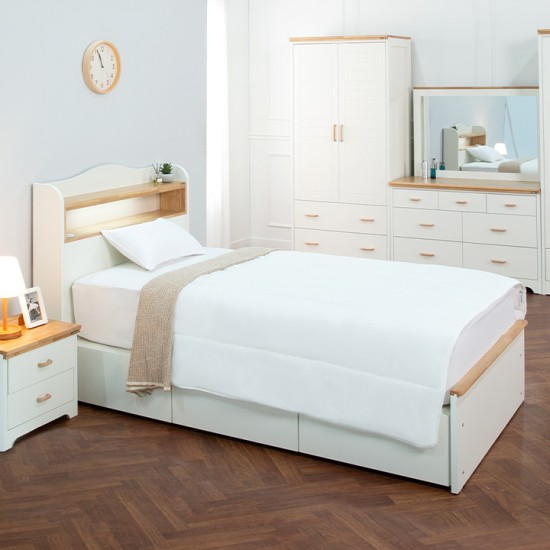 국내에서 제작한 수납형 고무나무 원목침대